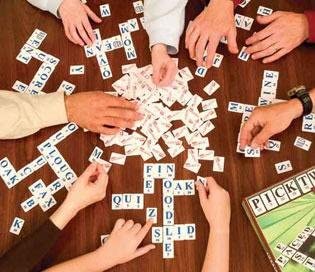 Players draw letter tiles and build their own personal crosswords as fast as they can.