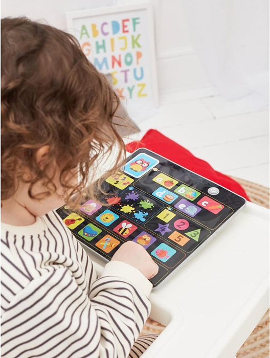 子どもは大人のマネが大好き!自分専用のタブレットおもちゃで「見て、触って、聞いて」様々な感覚を育ててあげましょう。